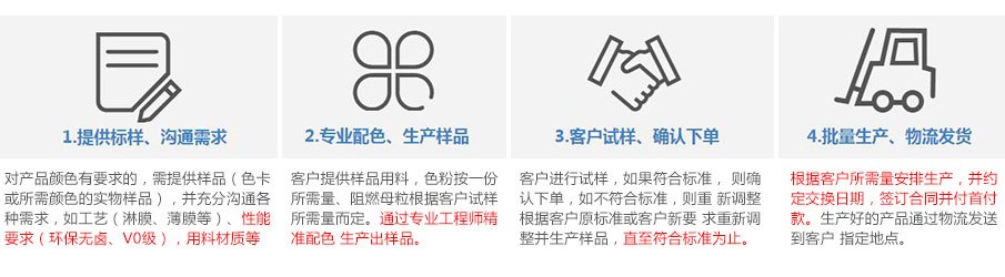 主營產(chǎn)品有:色母粒、功能母粒、抗老化抗紫外線、抗靜電母粒、阻燃母粒公司以磷系阻燃母粒、氮系阻燃母粒、溴系阻燃母粒、阻燃改性塑料為主,PP環(huán)保阻燃母粒、PE阻燃母粒、PC透明無鹵阻燃母粒、PET透明無鹵阻燃母粒、PA無鹵阻燃母粒、廣泛應(yīng)用于:......